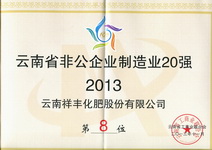 云南省非公企業(yè)制造業(yè)20強(qiáng)第8名
