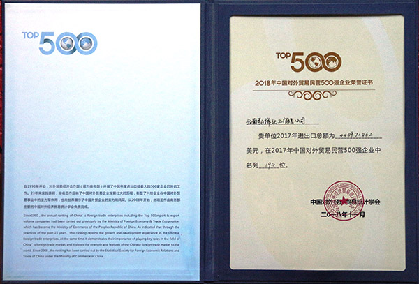 2017中國對(duì)外貿(mào)易民營500強(qiáng)企業(yè)(第194名)