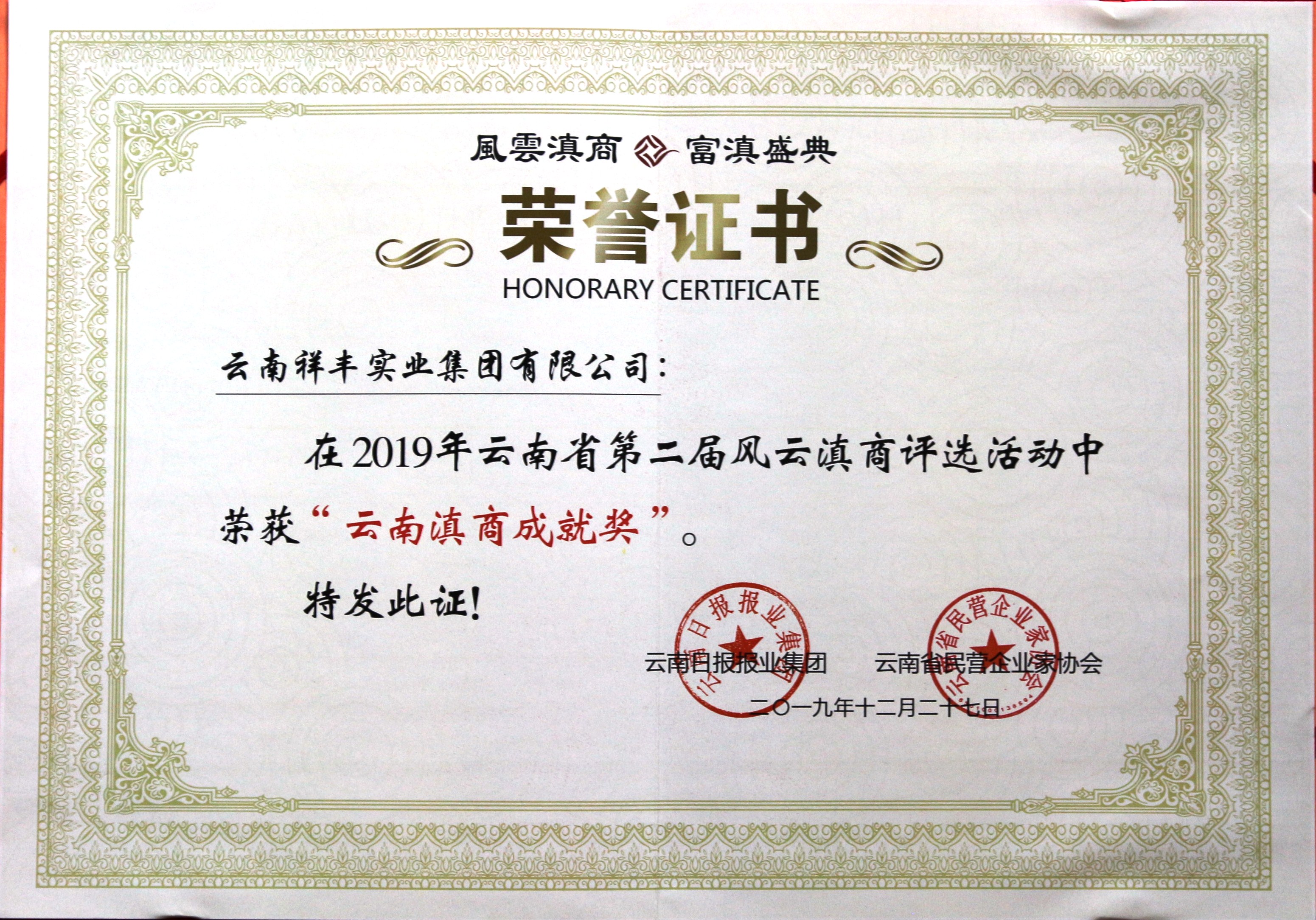 2019"云南省百名優(yōu)秀民營(yíng)企業(yè)家"