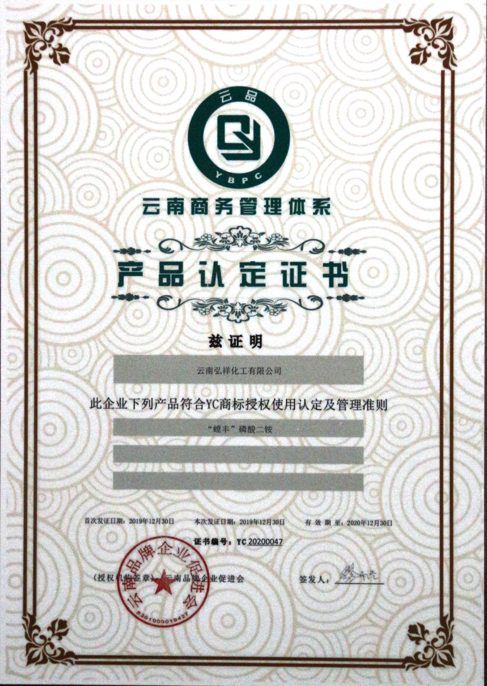 弘祥化工“螳豐”磷酸二銨符合YC商標(biāo)授權(quán)使用認(rèn)定及管理準(zhǔn)則