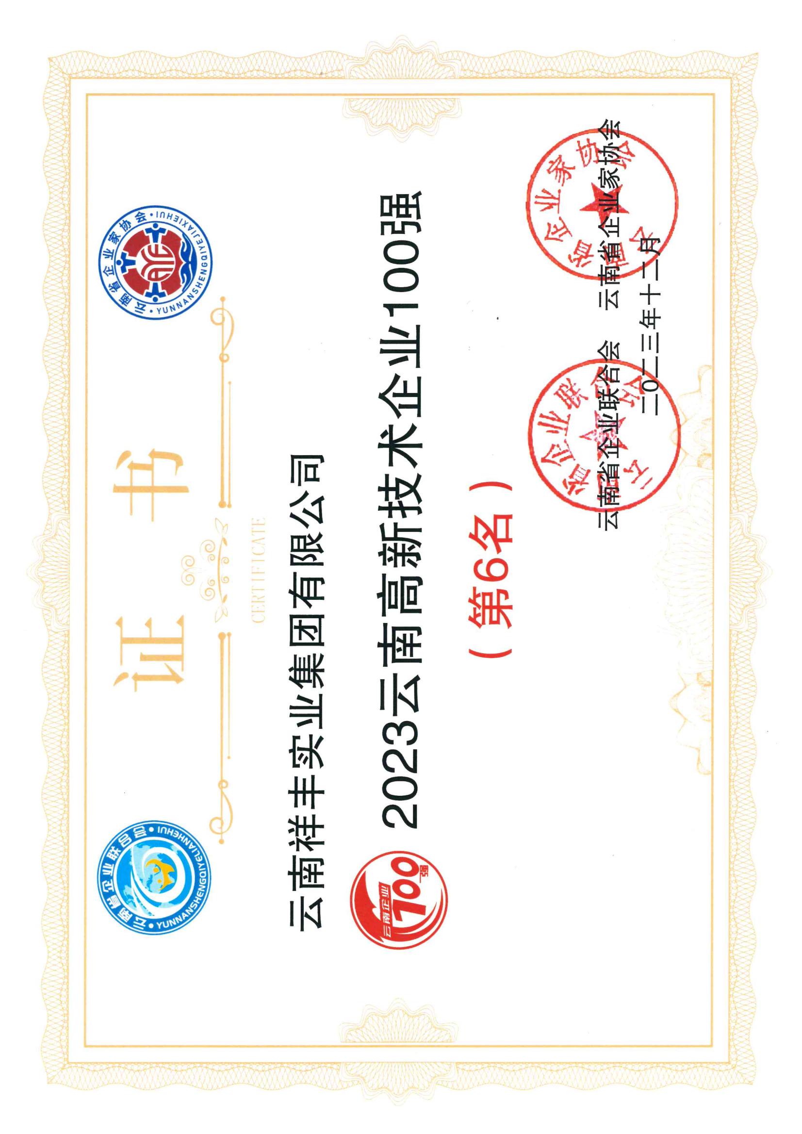 2023云南高新技術(shù)企業(yè)100強(qiáng)(位列第6)