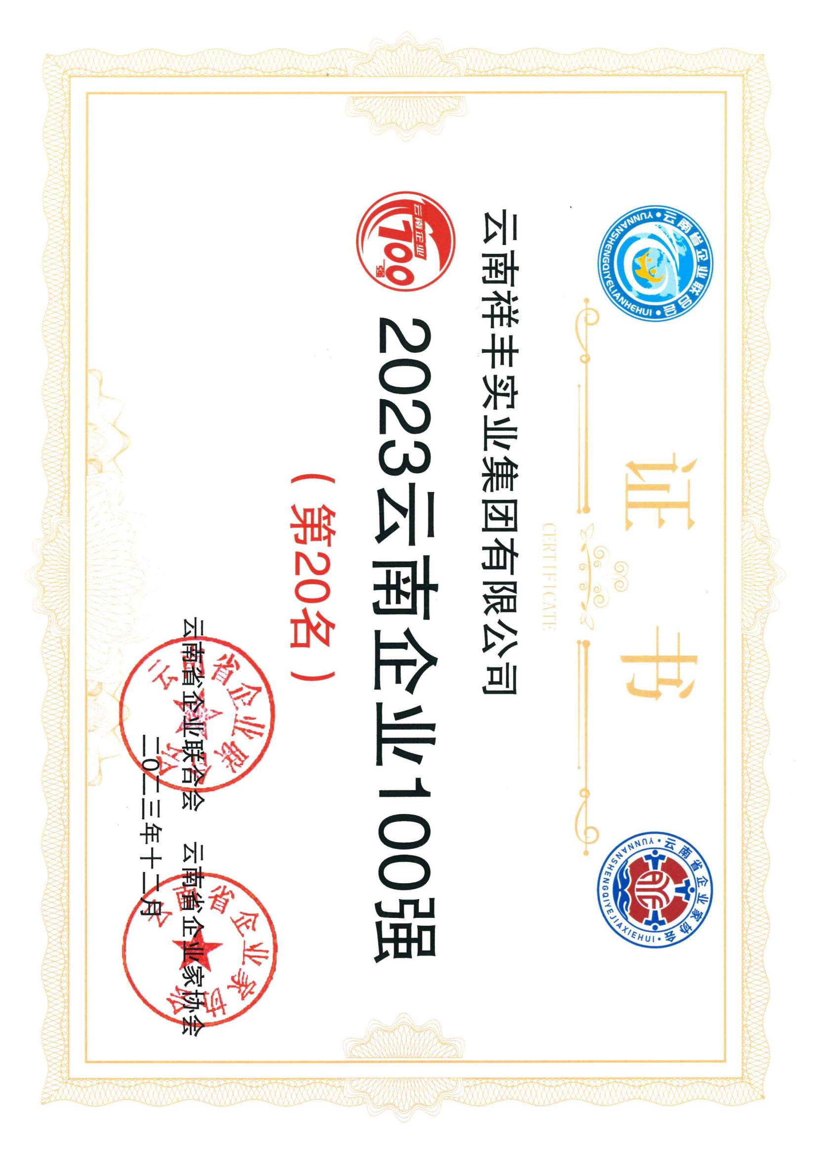 2023云南企業(yè)100強(qiáng)(位列第20)